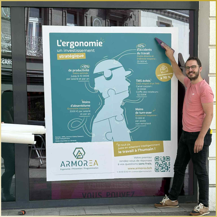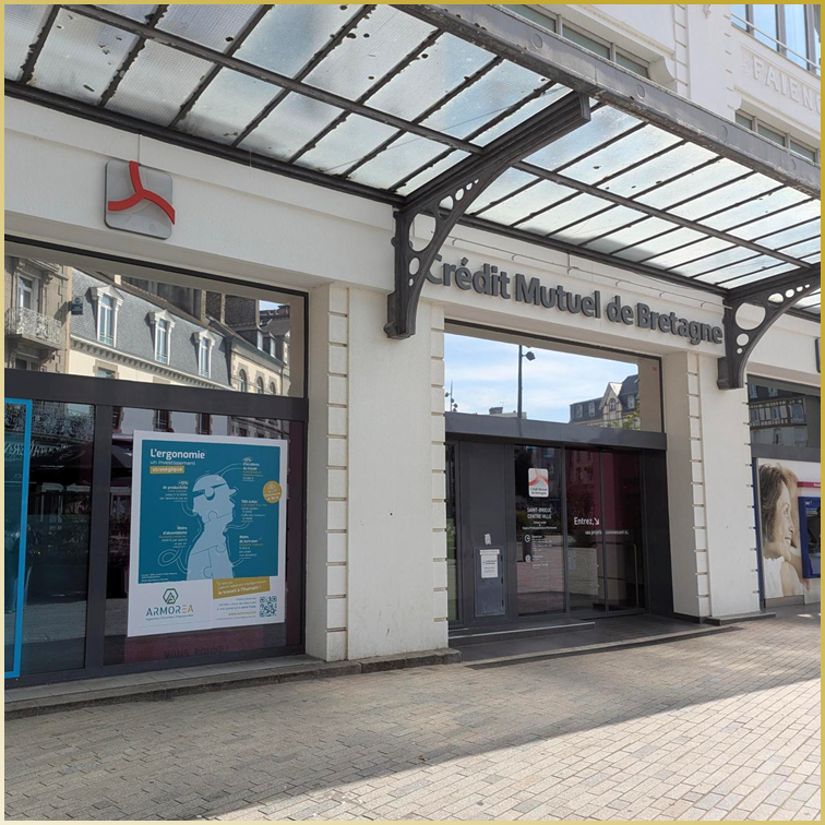 L'ergonomie s'affiche à Saint-Brieuc, Bretagne - Affiche sur la vitrine du Crédit Mutuel de Bretagne
